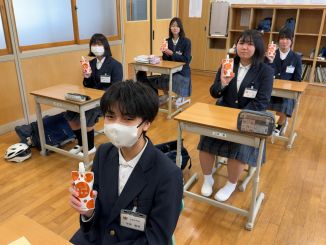 生徒代表が受け取り、しまなみ地域の温暖な自然の恵みと生産者の方の努力への